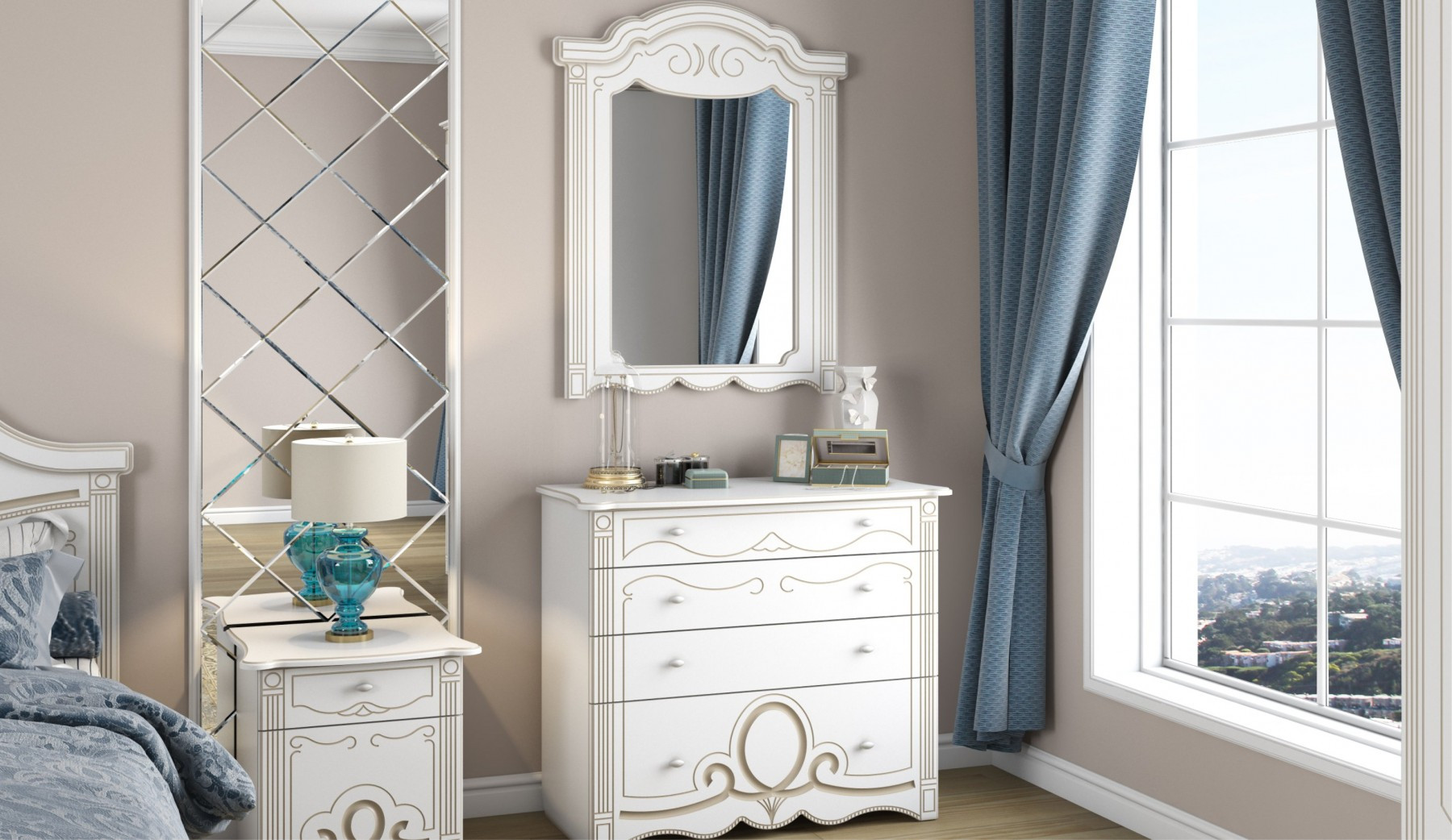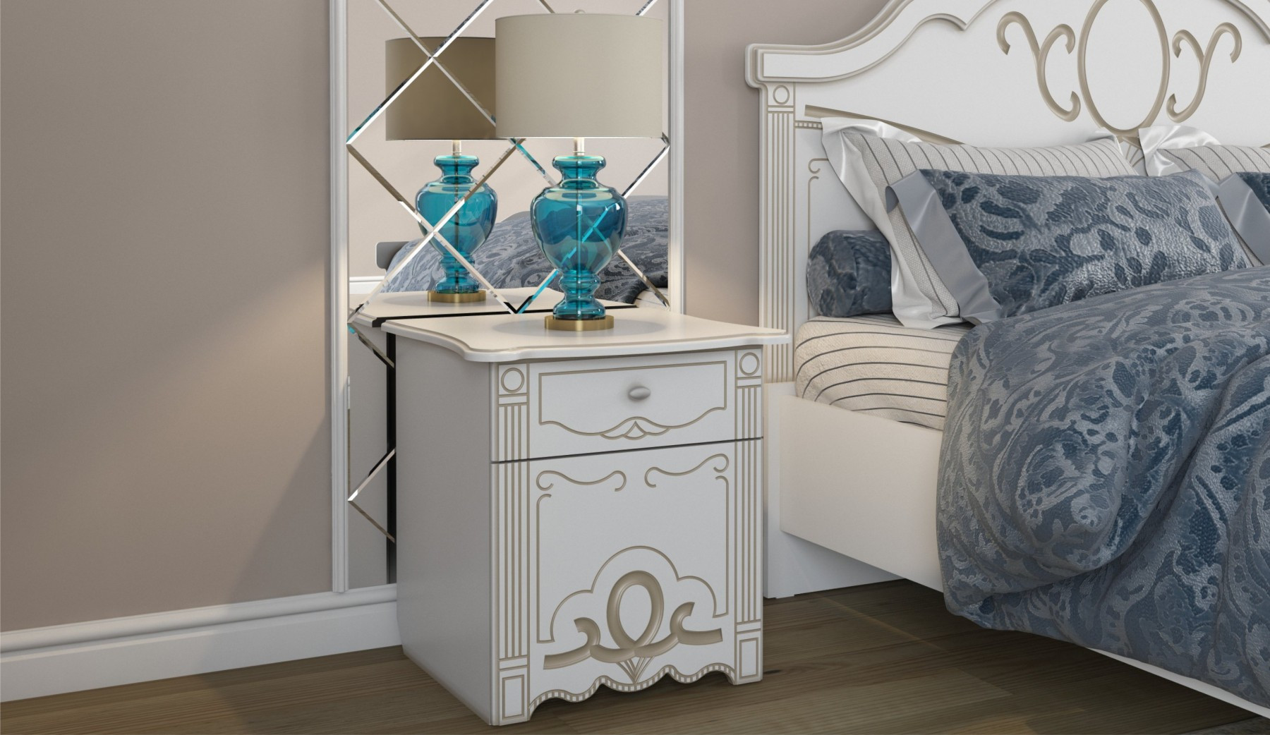 —Спальный Гарнитур Барбара Белый/Патина Золото