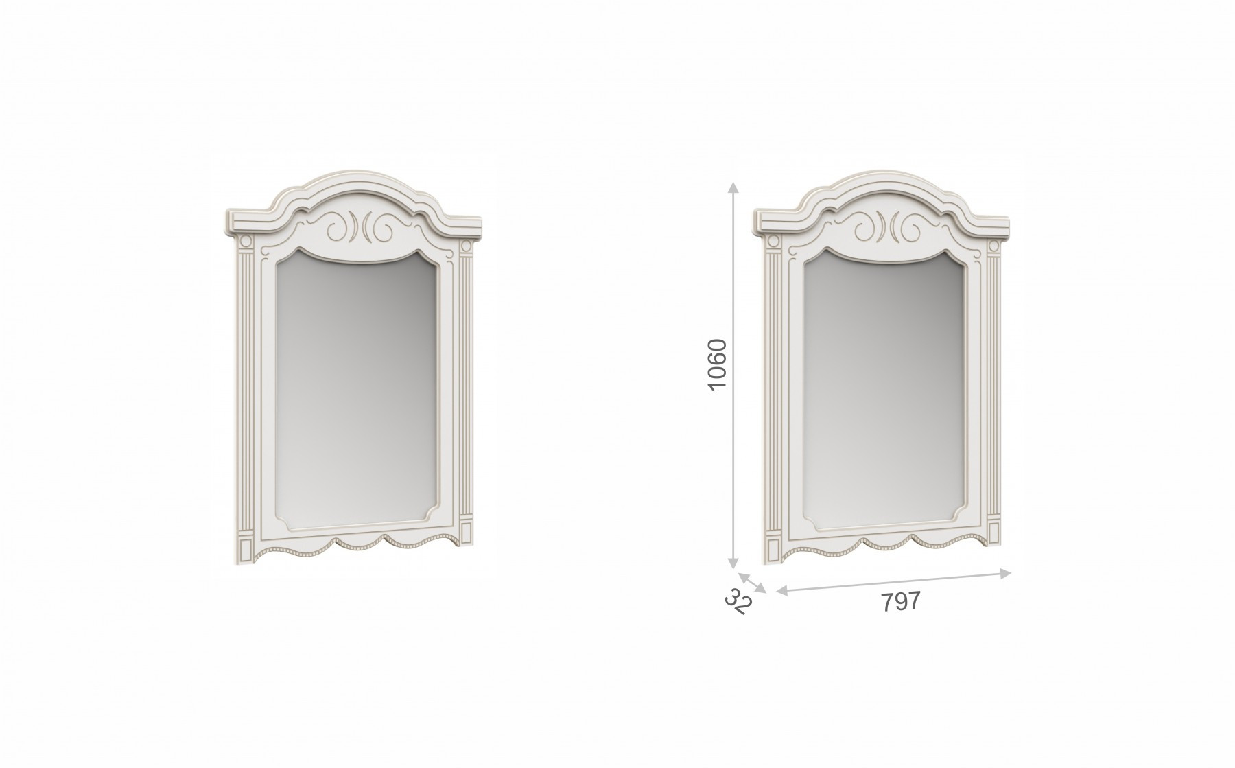 • Зеркало: Ширина 797 мм х Глубина 32 мм x Высота 1080 мм