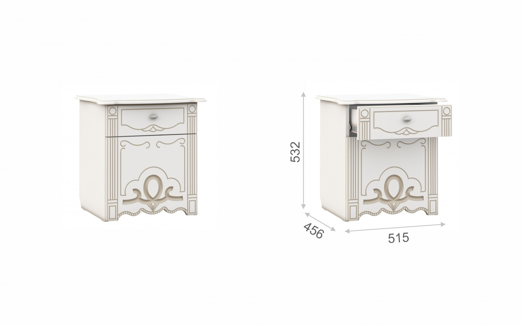 • Тумба Прикроватная: Ширина 515 мм х Глубина 456 мм x Высота 532 мм - 2шт